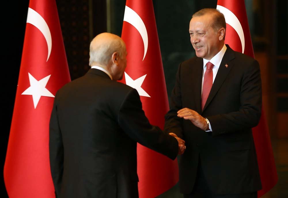 Törende Erdoğan ve Bahçeli’nin samimi ve neşeli hali fotoğraflara yansırken en çarpıcı kare Anayasa Mahkemesi Başkanı Zühtü Arslan’ın tebriği sırasında çekildi. Arslan, Erdoğan’ı adeta esas duruşta başını öne eğerek selamladı.