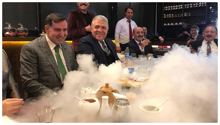 Paylaşılan diğer fotoğrafta ise restoranda dumanlı gösteri yapılıyor. Özhaseki’nin mutluluğu dikkat çekiyor. Tepkiler üzerine fotoğrafları kaldırmak zorunda kalan Tekinsoy, eleştirilere, “Bakanımızı yemeğe ısrarla ben davet ettim. O da yoğun tempo içinde bize kısa da olsa bir vakit ayırıp uğrama nezaketi gösterdi. Maksatlı olarak bunu istismar etmek isteyen ve farklı yönlere çekerek çarpıtmaya çalışanları ben Allah’a havale ediyorum” diyerek durumu kurtarmaya çalıştı.