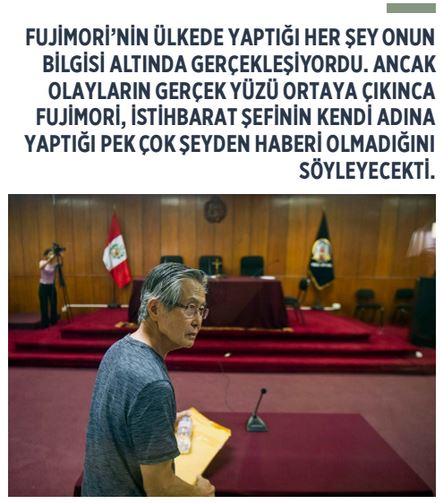 Bugün Türkiye’de olduğu gibi, Peru’da da yargıçlar, mahkemeler, siyasi partiler ve canlı bir medya vardı. Ama hiçbiri yapması gerekeni yapmıyordu. Bunun neden böyle olduğu, yani neden hakimlerin hakim gibi, gazetecilerin gazeteci gibi, muhalif siyasetçilerin muhalefet gibi davranmadığı, Fujimori’nin iktidarı kaybedip ülkeden kaçmasından sonra anlaşılabildi. Ortaya çıkan belgeler, o kadar çarpıcıydı ki, gerçekte ülkeyi Fujimori’nin değil, Milli İstihbarat Servisi’nin (Servicio de Inteligencia Nacional-SIN) başında bulunan Montesinos’un yönettiği görülüyordu.