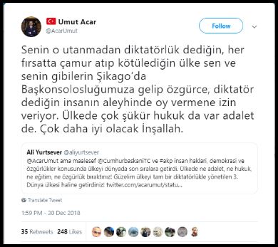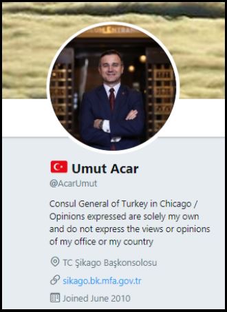 Umut Acar isimli bir şahıs var. Kendisi “Şikago” Başkonsolosu.