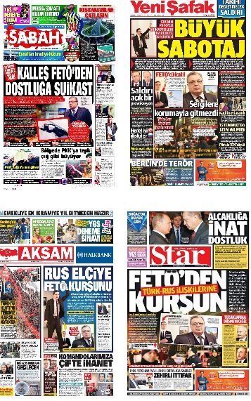 Yazılanlar aynı olduğu için içinden bir örneklem alalım. Kim olsun, kim olsun? Bağlı bulunduğu holdingin Ankara temsilcisi “FETÖCÜ” iddiasıyla tutuklu olan Hürriyet’in konjektürel yazarı Abdülkadir Selvi olsun. Selvi yazdığı yazıda MİT’İn bir süredir bütün gazetecilere anlattığı şeyleri çok güzel özetliyor. Selvi’ye göre katil FETÖ’nün uyuyan hücresinden : …FETÖ’cülerin bir daha 15 Temmuz türünde bir darbe yapma kabiliyetleri kalmadı. Ama uyuyan hücreleri harekete geçirip Cumhurbaşkanı Erdoğan olmak üzere stratejik hedeflere yönelik suikastler düzenleyebilirler deniliyordu. İntihar eylemlerinden endişe ediliyordu. Büyükelçi Karlov’a yönelik suikast bunu gösterdi. PKK bir süredir ikiz eylemler yapıyor. Aynı hedefe yönelmiş olan FETÖ ise ikiz senaryolarını hayata geçirmeye başladı. FETÖ’cü yayın organı Today’s Zaman’ın Ankara Temsilcisi Abdullah Bozkurt 16 Aralık tarihinde attığı tweette “büyükelçilerin bundan böyle güvenliği yok” demişti. Bunun ne anlama geldiğini Karlov suikastiyle öğrenmiş olduk. FETÖ’cü uyuyan hücreler harekete geçti. Yeni hedeflerinin kim ya da kimler olduğunu ise meçhul.