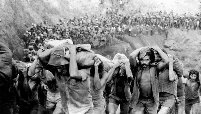1980’li yılların başlarında ilkel çalışma şartlarıyla tepki çeken altın madeni, yeniden çalışma hazırlanırken, adeta esir kampını andıran görüntüler yeniden gündeme geldi. Çıplak Dağ anlamındaki bu maden, Brezilya’da Amazon Nehri’nin denize döküldüğü yerin 430 kilometre güneyinde yer alıyor. Bu tarihten birkaç yıl önce bir çocuk nehrin kıyısında 6 gram ağırlığında külçe altın bulması modern tarihte büyük bir altın yarışını tetikledi. Hızlı zengin olma rüyasıyla motive olan onbinlerce madenci açık alandaki karınca sürüsü gibi görüntüler oluşturarak bu madene indi. Bu dönemde madende çalışan işçilerin yaşadığı tehlikeli koşullar, o dönemde Brezilyalı fotoğrafçı Sebastião Salgado’nun objektifine yansımıştı.