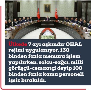 15 üniversite kapatılırken yurt, okul, etüt merkezi olarak kapatılan kurumların sayısı 2 bin 400. Sivil toplumda da büyük tasfiye yaşanıyor. 19 sendika, 1700 dernek ve vakfın faaliyeti durdurulup mal varlıklarına el konurken, konuşan STK’lar ve başkanları hedefte. Askeri okullar, polis okulları ve koleji kapatıldı. Türkiye’nin başarılı 170 lisesi öğretmen tasfiyeleri eliyle parti okulu haline getirildi.