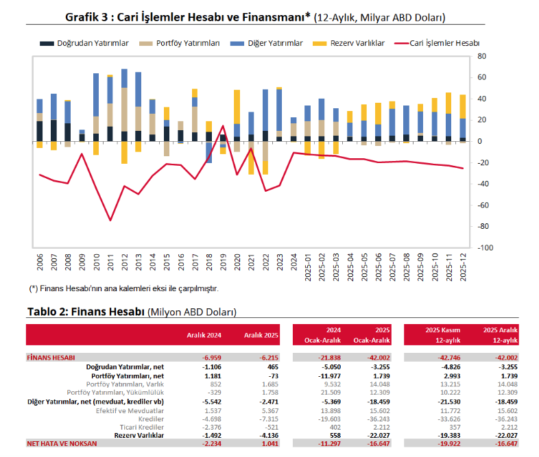 2025 yılı Aralık ayı yıllıklandırılmış cari açığın finansmanına net doğrudan yatırımlar 3,3