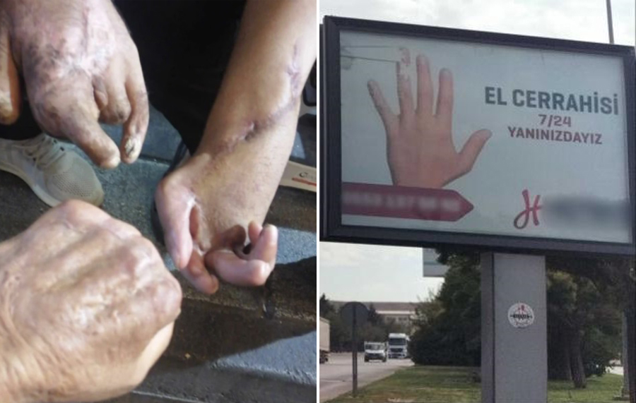 Gaziantep (OSB) girişinde billboardlarda bir reklam sizi karşılıyor: “El cerrahisi 7/24 yanınızdayız.” Belki daha önce iş kazası geçirmeyen birisi için anlamsız ya da çarpıcı gelmiyor olabilir ama patronlar için ilgi çekici reklamlar bunlar, mağdurlar içinse ürkütücü. Yılda kaç kişi iş kazalarından dolayı uzuv kaybı yaşıyor, buna dair elimizde net bir veri yok. Ama Ali’nin çalıştığı Akınal Sentetik fabrikasında yaşananlar bu oranın yüksek olduğunu gösteriyor.
