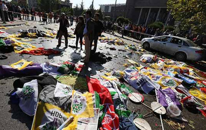 ”Ankara’da Kürt barış aktivistlerinin yer aldığı bir mitinge yönelik bombalı saldırıların sorumluluğu, muhtemelen, Türkiye’nin Suriye ve Irak ile olan uzun sınırları boyunca faaliyet gösteren DAEŞ teröristlerinin üzerine kalacaktır. Fakat 1 Kasım’da gerçekleşecek genel seçimlerin yakınlığı, muhalefet partileri arasında Cumhurbaşkanı Recep Tayyip Erdoğan öncülüğündeki sert hükûmet politikalarını destekleyen güçlerin saldırıya karışmış olabilecekleri yönündeki şüpheleri artırdı.”