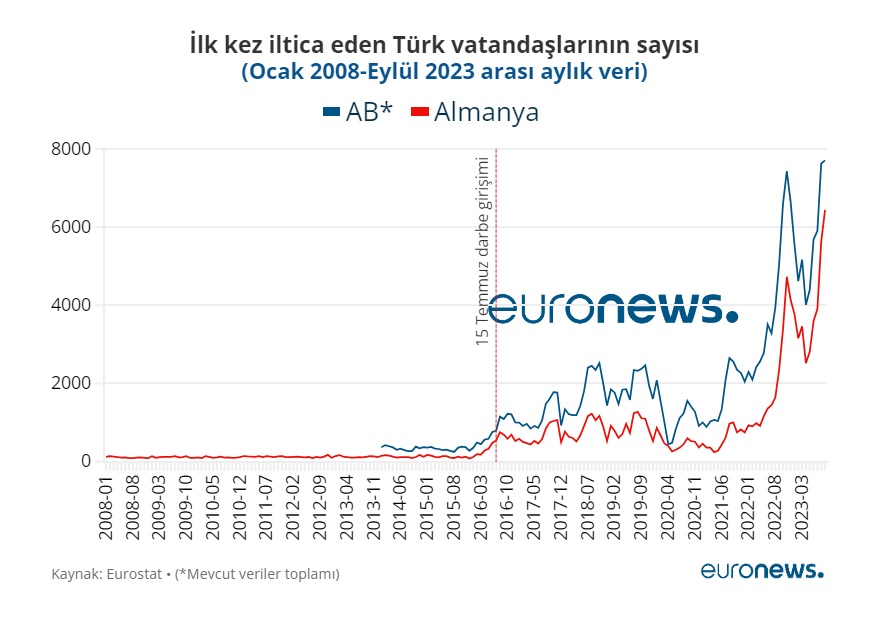 2008-2015 yılları arasında AB ülkelerine ilk kez iltica eden Türk vatandaşlarının sayısı 4 bin civarında seyretti ve 5 binin üzerine çıkmadı. 15 Temmuz darbe girişiminin yaşandığı 2016’dan sonra ise iltica sayısı hızla arttı.