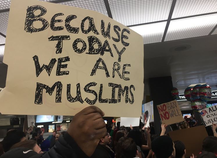 Havalimanlarında ‘BGÜN BİZ MÜSLÜMANIZ’ dövizleri açan ABD’liler, hukuksuz kararnameye tepki gösterdi. Gösterilere hahamların da desteğe geldiği görüldü. New York’taki taksi şoförleri ise Trump’ın Müslüman ülkelerden giriş yasağını protesto etmeye hazırlanıyor.