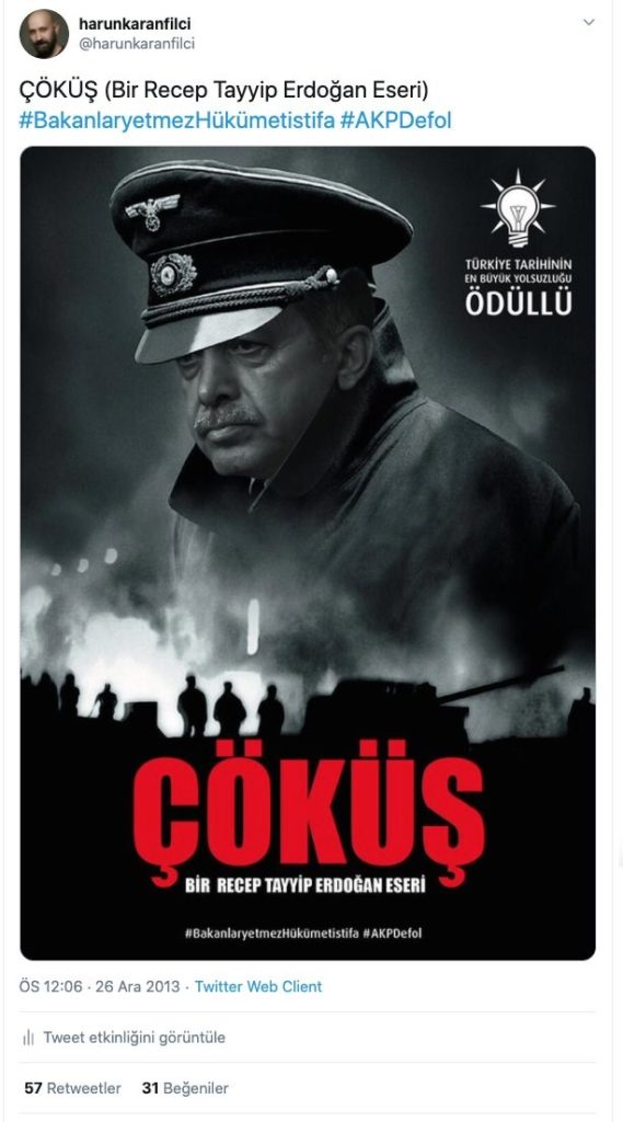 Sosyal medyadan 2013 yılında paylaşım yapan reklamcı, tasarımcı, grafiker Harun Karanfilci’ye paylaşım yaptığı dönemde Cumhurbaşkanı Abdullah Gül olmasına rağmen7 yıl sonra AKP’li Cumhurbaşkanı Erdoğan’a hakaretten iki soruşturma açıldı.
