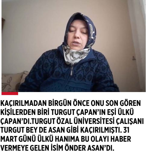 Önder Asan, 41 yaşında, KHK ile kapatılan özel bir okulda çalışan, kamu görevinden çıkarılan eski bir öğretmendi. Kaçırılmadan birgün önce onu son gören kişilerden biri Turgut Çapan’ın eşi Ülkü Çapan’dı.Turgut Özal Üniversitesi çalışanı Turgut Bey de Asan gibi kaçırılmıştı. 31 Mart günü Ülkü Hanıma bu olayı haber vermeye gelen isim Önder Asan’dı. Ülkü Hanım bu olayı BBC Türkçe’ye şöyle anlatmıştı: “31 Mart günüydü, o gün gelecekti (Turgut Çapan’ı kastediyor) ve çocukları pikniğe götürecektik. Hatta telefonu da bendeydi. Hakkında yakalama ya da gözaltı kararı bulunmuyordu. Çocuğu okuldan almaya gidiyordum, evimizin sokağında Önder Bey yanıma geldi ve ‘Abla Turgut Bey Şentepe tarafında kaçırıldı’ dedi ve gitti. Zaten onun gelmesi de kendi açısından bir riskti ancak bunu göze almıştı. Ama bana haber vermek istedi anladığım kadarıyla.”