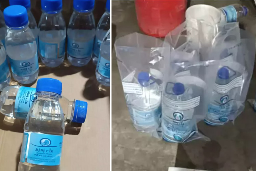 Yapılan incelemede pet şişelerin çeşme suyu ile doldurulup, üzerlerine zemzem suyu etiketlerinin yapıştırıldığı belirlendi.