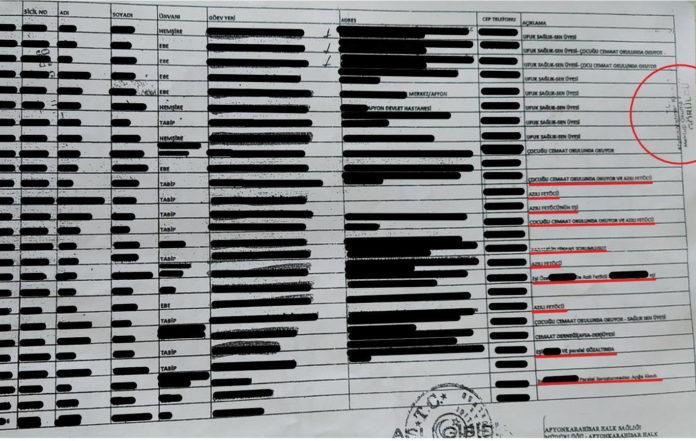 Afyon Valiliği, Saray’dan gelen bir talimatla, 15 Temmuz’dan hemen sonra 25 sağlık çalışanının darbe ve örgüt ile irtibatını kurmuş ve ‘görevleri başında bulunmalarını’ sakıncalı görüp ‘gereğinin yapılması’nı sağlamış.