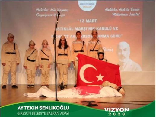 Sözcü gazetesinin haberine göre, AKP Giresun Belediye Başkan adayı Aytekin Şenlikoğlu’nun seçim propagandası, şehit cenazesi ve İstiklal Marşı üzerinden yapıldı. Geçen günlerde Şırnak’ta şehit düşen Jandarma Astsubay Çavuş Burçin Damcı’nın, asker omuzundaki cenaze fotoğrafının altına, “Vizyon 2028” sloganı eşliğinde AKP adayının ismi yazıldı.