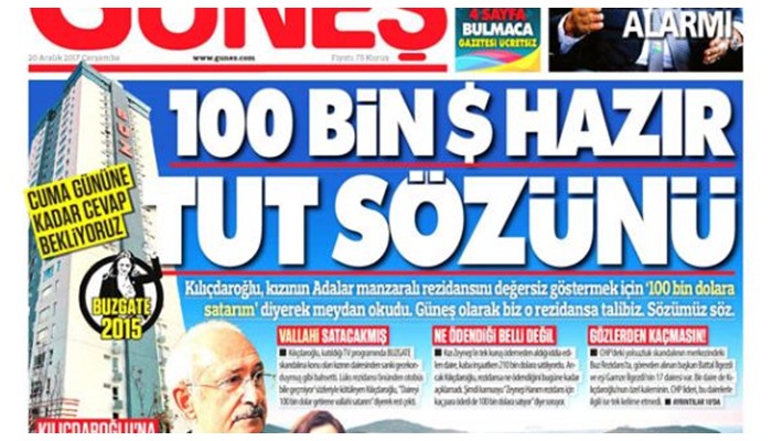 Ancak Kılıçdaroğlu’na “100 bin dolar hazır, tut sözünü” diyen Güneş gazetesi kendi blöfünün altında kalmış olacak ki, dünkü nüshasında “satmaya hazırız” sözünü görmedi.
