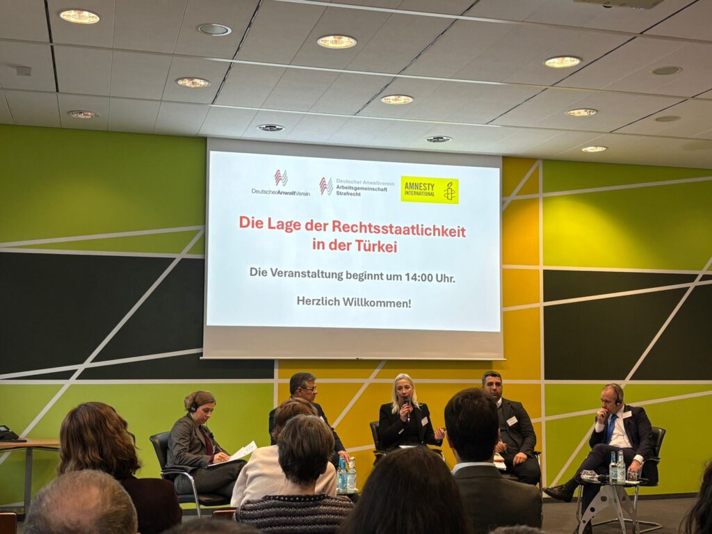 Berlin’de Alman Avukatlar Birliği (DAV), Uluslararası Af Örgütü ve DAV Ceza Hukuku Çalışma Grubu’nun dün “Türkiye’de Hukukun Üstünlüğünün Durumu” adlı bir panel gerçekleştirdi.