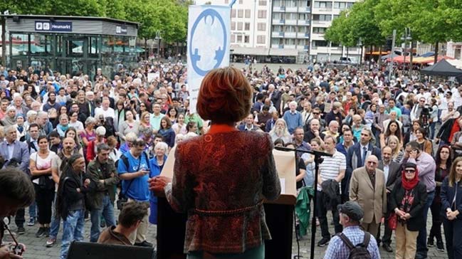 Köln’de en yoğun Türk esnafın bulunduğu Keup Caddesi’nde faaliyet gösteren Esnaf Birliği’nin Başkanı Meral Şahin de bir konuşma yaptı. Şahin, “Allah adına cinayet işlenemez. Biz bunu kabul etmiyoruz” dedi.