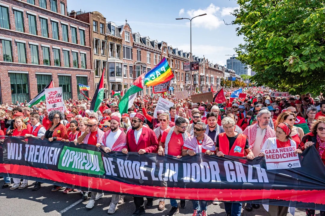 Hollanda’nın başkenti Amsterdam’da hükümetin İsrail’e yönelik tutumunu protesto etmek için düzenlenen “Kırmızı Hat” yürüyüşüne yaklaşık 250 bin kişi katıldı. Bu, ülke tarihinin en büyük protestolarından biri olarak değerlendiriliyor.