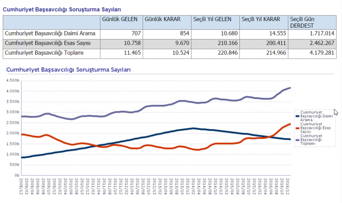 Cumhuriyet Savcılığı soruşturma sayıları : 3 milyon 497 bin 871 4 milyon 179 bin 281