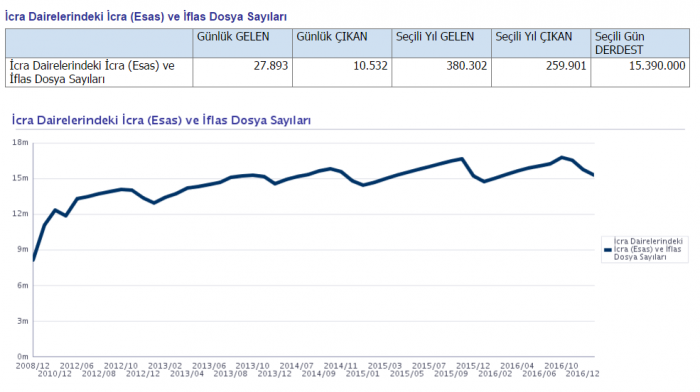 İcra Dairelerindeki İcra ve iflas dosyaları: 8 milyon 14 milyon 15.3 milyon