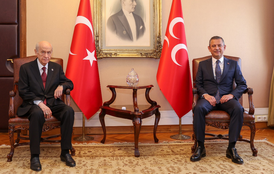 CHP Genel Başkanı Özgür Özel, AKP’li Cumhurbaşkanı Erdoğan ile gerçekleştirdiği görüşmenin ardından Cumhur İttifakı ortağı MHP Genel Başkanı Devlet Bahçeli ile bir araya geldi.