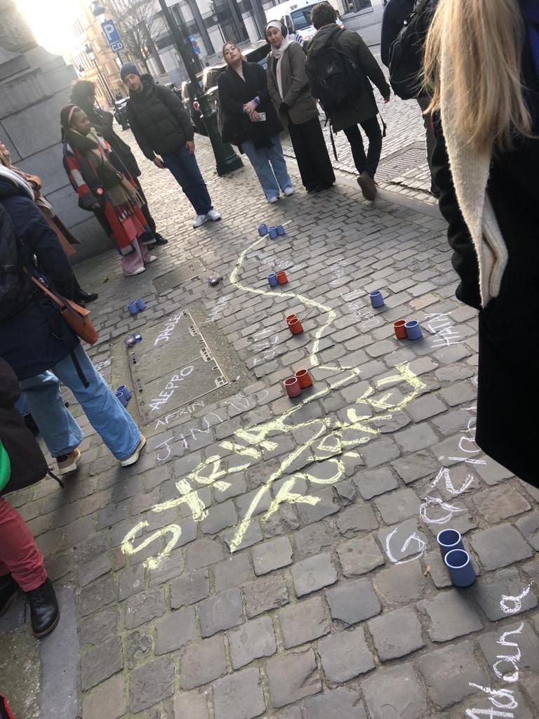 Belçikalı merkezli sivil toplum örgütleri 11.11.11 ve Solidarity with OTHERS, Türkiye ve Suriye’deki deprem mağdurlarıyla daha fazla dayanışma için Belçika Dışişleri Bakanlığı önünde eylem düzenledi.