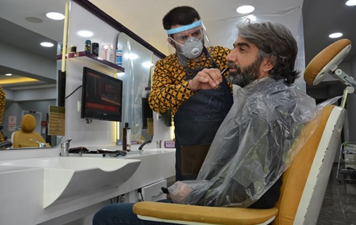 Koronavirüs salgını nedeniyle 21 Mart’ta kapatılan berberler ve kuaförler yeniden hizmete başladı. Berberlerin açılmasıyla sabahın ilk saatlerinde gelen müşteriler hijyen kuralları kapsamında tıraşlarını oldu.
