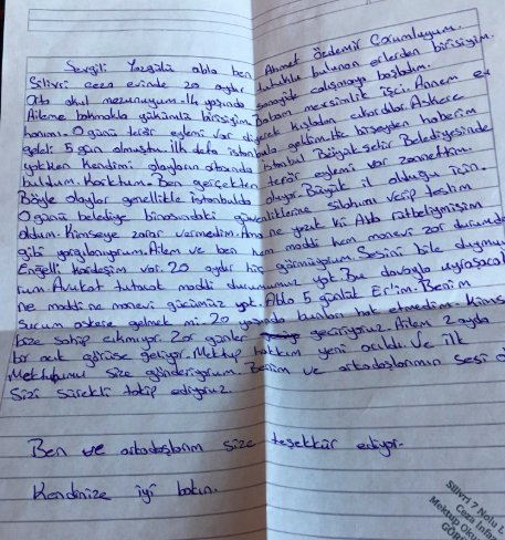 Er Ahmet Özdemir gönderdiği mektupta 5 günlük er olduğunu, o gece terör ihbarı var diyerek İBB’ye götürdüklerini hiç bir şeyden bilgisi olmadığını durumların kötü avukat tutacak parası dahi olmadığını söylüyor ve gazeteciden yardım istiyor. Özdemir o gece güvenliklere silahlarının verip teslim olduklarını da söylüyor.