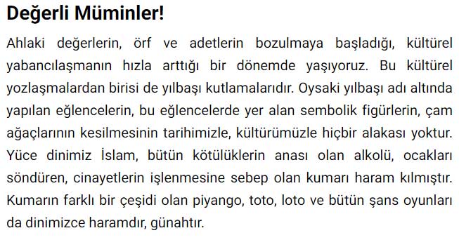 DİYANET’İN ‘YILBAŞI HARAM’ HUTBESİ