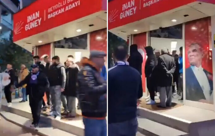 İstanbul Kasımpaşa’da AKP’li bir grup CHP’nin seçim ofisine gelerek ‘semtini satanı biz de satarız ve Recep Tayyip Erdoğan’ şeklinde slogan attı.