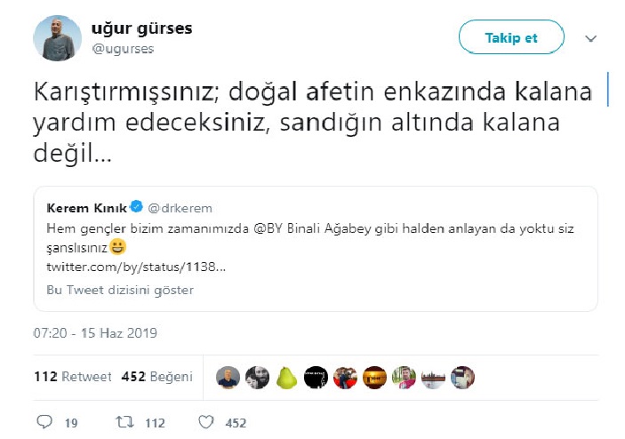 Kızılay Başkanı Kerem Kınık’ın söz konusu paylaşımına sosyal medyadan tepki geldi. Söz konusu tepkilerin bazıları şöyle: