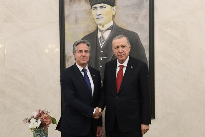 AKP’li Cumhurbaşkanı Recep Tayyip Erdoğan, Ankara’ya gelen ABD Dışişleri Bakanı Antony Blinken’ı Esenboğa Havalimanı’nda kabul etti. ABD Dışişleri Bakanı Antony Blinken, temaslarda bulunmak üzere Ankara’ya geldi. Bakan Blinken ve beraberindeki heyeti Ankara’ya getiren uçak, Esenboğa Havalimanı’na indi.
