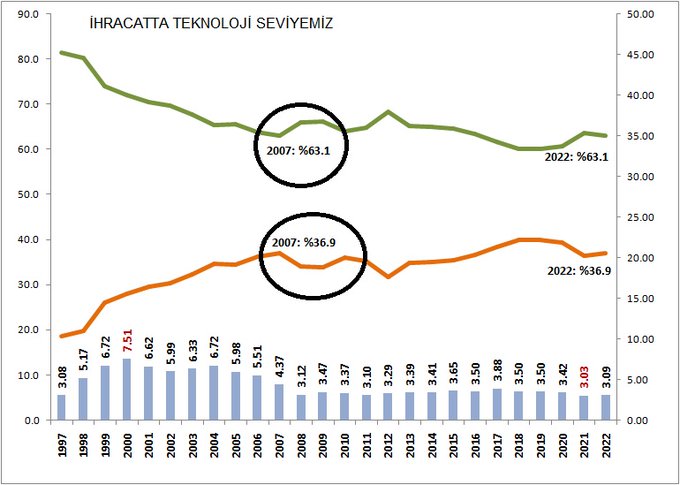 Leyla Şahin Usta, teknolojik ürün ihracatının kendi dönemlerinden önce bilinmediğini iddia etti. Oysa ihracat rakamlarının dökümleri aynı şeyi söylemiyor. TÜİK istatistikleri toplam ihracat içinde teknoloji ürünlerinin oranının AK Parti döneminde yerinde saydığını ve bir miktar gerilediğini ortaya koyuyor.