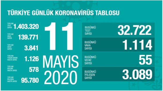 Yeni kaydedilen bin 114 vakayla birlikte Türkiye’deki toplam vaka sayısı ise 139 bin 771’e yükseldi.