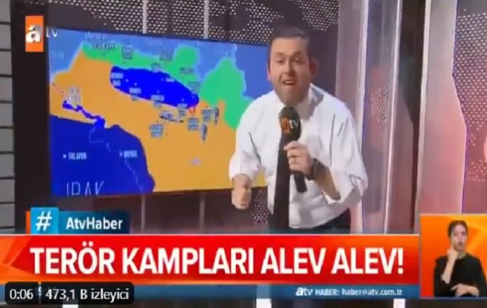 Millî Savunma Bakanlığı tarafından başlatılan Pençe Kaplan Harekatı’ndan son gelişmeleri stüdyodan sanki cephedeymiş gibi heyecanlı bir şekilde anlatan yandaş ATV muhabirinin şekilden şekle girmesi izleyenleri şaşırttı.