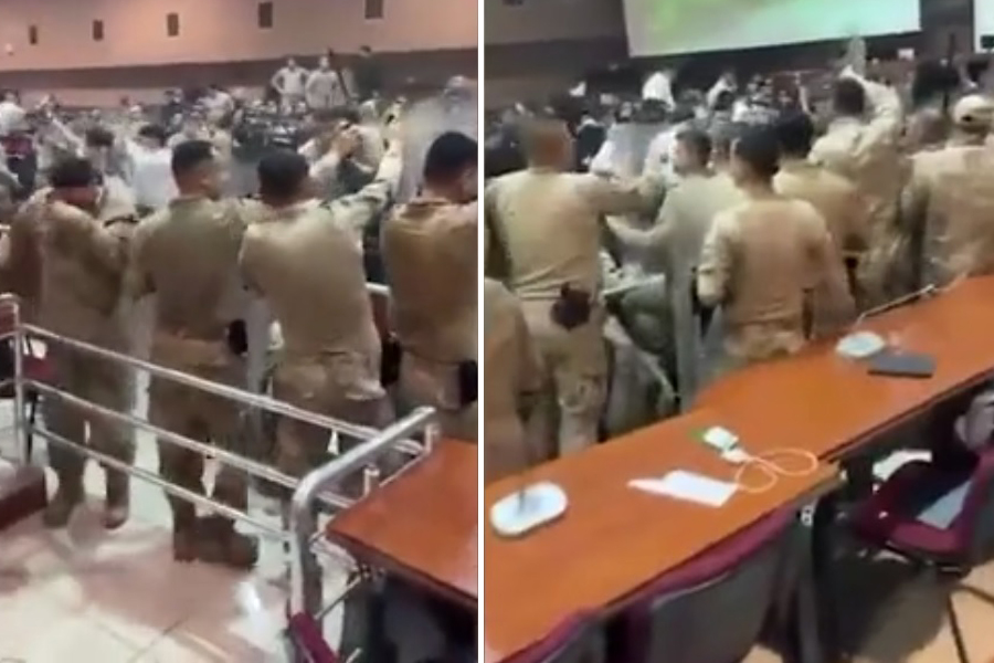 Mahkeme kararının açıklanması sırasında, 300’den fazla sanık jandarma personeline sandalyelerle saldırmış, mahkeme heyeti duruşma salonunu terk ederek duruşmaya ara vermişti.