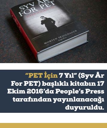 Danimarka istihbarat teşkilatı PET’in 7 yıl başkanlığını yapan Jakob Scharf, 3 yıl önce görevinden istifa edip sessizliğe bürünmüştü. Ülkenin önde gelen gazetelerinden Politiken’in muhabiri Morten Skjoldager, bunu fırsat bilerek Scharf’la bir nehir söyleşi gerçekleştirmiş ve 7 yıllık istihbarat başkanlığı dönemini bir kitaba dönüştürmüştü. “PET İçin 7 Yıl” (Syv År For PET) başlıklı kitabın 17 Ekim 2016’da People’s Press tarafından yayınlanacağı duyuruldu.