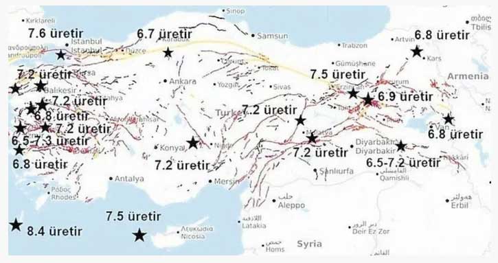 Tetikçi site, deprem uzmanlarının halkı korkuttuğunu öne sürdüğü haberinin ayrıntılarında bir de “gerçekleşmeyen deprem haritası” yayınladı. “Şu ana kadar tutan bir deprem tahmini yok” ara başlıklı haberde, 6 Şubat depreminin yaşandığı bölgede “7,2 büyüklüğünde deprem üretir” notu var.