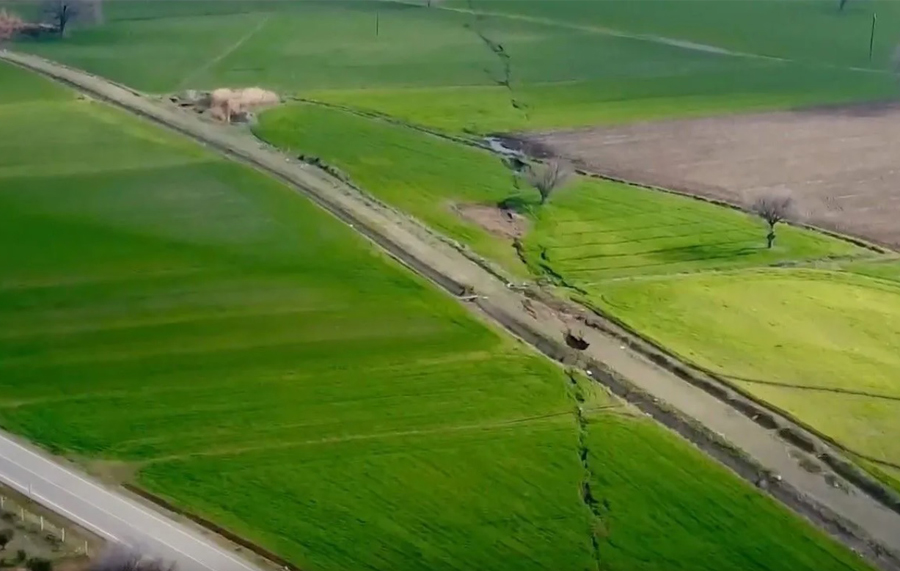 TRT Haber’de yer alan habere göre; Kahramanmaraş’ın Tevekkeli köyünde kilometrelerce uzunlukta olan kırık depremin büyüklüğünü gözler önüne seriyor.