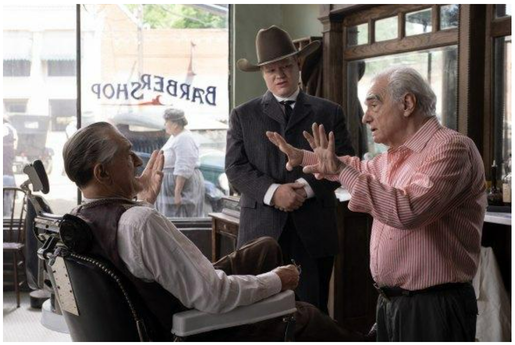 Sahnedeki bir foley sanatçıları grubunun, 20’ler veya 30’lar radyo şovunun rahatsız edici neşesiyle Osage soykırımını anlattığına tanık oluyoruz. Bu sekans ister istemez, hem genç Orson Welles’in eserlerini (efsanevi “Dünyalar Savaşı” kaydı) hem de günümüzün gerçek suç podcast’leri ve belgesel dramalarının istismarcı provokasyonlarını anımsatıyor. Amerika’nın şiddet, gösteri ve eğlence ile ilişkisine yönelik başka bir Scorsesian bu anlatım tarzı bize de bir ayna tutuyor: Üç saatten fazla süren tecavüz ve cinayet dramasını izledikten sonra izlediğimiz soykırımın bizi hala etkilemediğini ironik ve ikonik bir şekilde aktarmanın dahice bir yöntemi. Scorsese bununla adeta bir “Üçüncü duvarı yıkmak”ın bir örneğini bize gösteriyor.