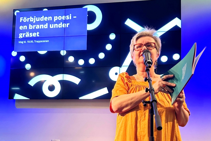 UNESCO, İsveç PEN ve İsveç Yazarlar Birliği’nin ortaklaşa gerçekleştirdiği “Yasak şiir- Çimlerin altında bir ateş” (“Förbjuden poesi – en brand under gräset”) başlıklı geceye, insan hakları ihlallerinin yaşandığı değişik ülkelerden şairler katıldı.
