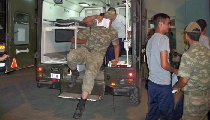 Kışlalarından ambulanslarla alınan Mehmetçiklerin 6’sının üniversite hastanesinde, diğer 4’ünün de devlet hastanesinde, ilk müdahaleleri yapıldı.