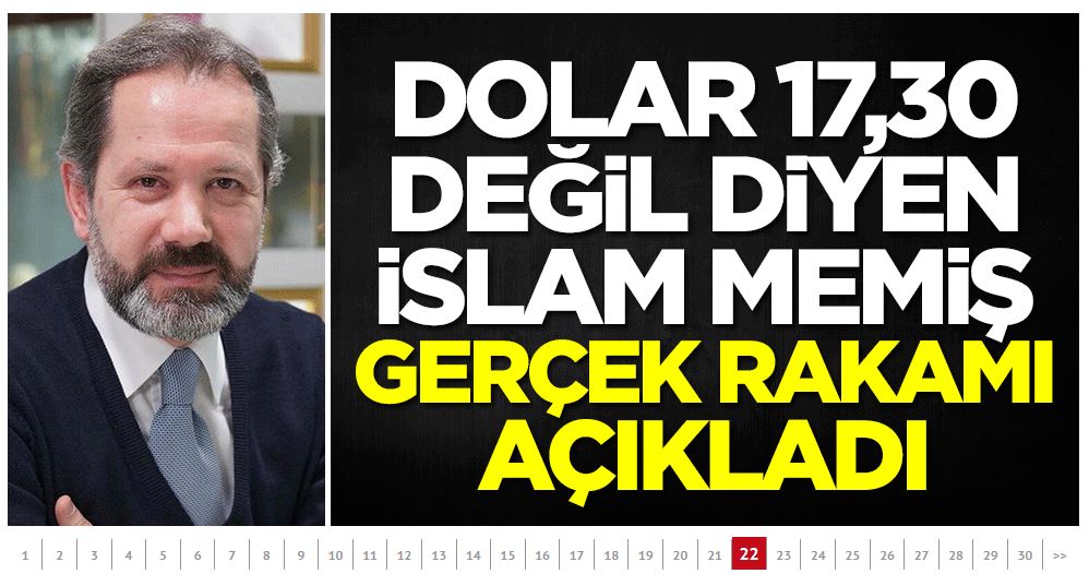 Altın ve Para Piyasaları Uzmanı İslam Memiş’in görüşlerini aktaran gazetenin haberinde, “İslam Memiş’ten çarpıcı dolar yorumu geldi. Memiş, doların gerçek değerinde olmadığı belirterek olması gereken fiyatı açıkladı. Bayramda da yükselişini sürdüren dolar kuru halihazırda 17,39 seviyesinden işlem görüyor. Dolar kurunun şu anda normal şartlarda olması gereken seviyenin 17,80-18,00 lira olduğunu belirten Memiş, “Fakat baskılar nedeniyle gerçek dolar rakamları kur farkına yansımıyor. Bu noktada gelişimleri takip etmeden yatırım yapmak, yatırımcıları zor bir duruma da sokabilir.” dedi.” ifadeleri kullanıldı.