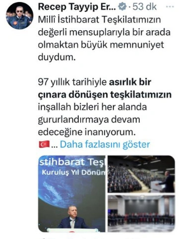 AKP’li Cumhurbaşkanı Erdoğan sosyal medya hesabından MİT’in kuruluş yıldönümü etkinliğine katılanların fotoğrafı paylaştıktan kısa bir süre sonra sildi.