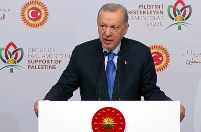 Recep Tayyip Erdoğan, Filistin’i Destekleyen Parlamentolar Grubu Toplantısı’nda açıklamalarda bulundu. “Filistin davasını savunmak, sadece mazlum bir halkı savunmak değildir, insanlığı, barışı ve adaleti savunmaktır.” diyen Erdoğan, “Filistin davası, yaklaşık bir asırdır her türlü zulme, barbarlığa ve katliama maruz kalmış bir halkın haysiyet davasıdır. Tüm bunlarla birlikte Filistin davası, özü itibariyle insan olma, insan kalma mücadelesidir.” ifadelerini kullandı. Erdoğan şöyle devam etti:
