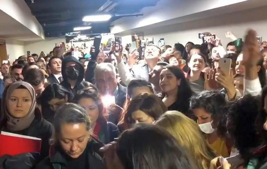 Polis ekiplerinin geniş güvenlik önlemleri almasına rağmen mahkeme salonunun kapısının yumruklarla zorlanmasının ardından duruşma büyük salona alındı.