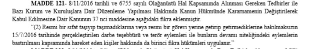 İlerleyen süreçte AKP düzenlemeyi sivilleri içine alacak şekilde genişletti. 24 Aralık 2017’de çıkan 696 sayılı KHK ile bu geterildi. Artık resmi sıfat sınırlaması ortadan kalktı.