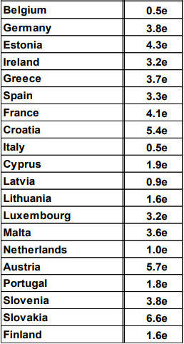 Eurostat tarafından açıklanan verilere göre AB genelinde en düşük yıllık enflasyon yüzde 0.5 ile Belçika ve İtalya’da görülürken Slovakya yüzde 6.6 ile en yüksek enflasyon oranına sahip. Avusturya yüzde 5.7, Hırvatistan yüzde 5.4 ile diğer yüksek enflasyon oranına sahip ülkeler. Almanya’da yıllık enflasyon yüzde 3.8 iken Fransa’da oran yüzde 4.1. Euro bölgesindeki 20 AB üyesi ülkenin enflasyon oranları şöyle: