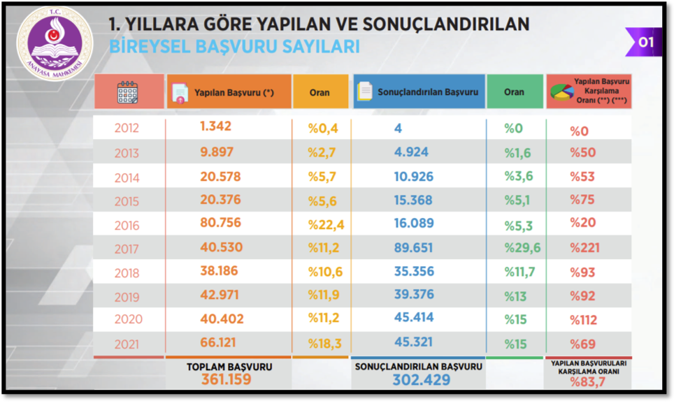 Bakın aşağıdaki tablo bizzat Anayasa Mahkemesi’nin sitesinden alındı: