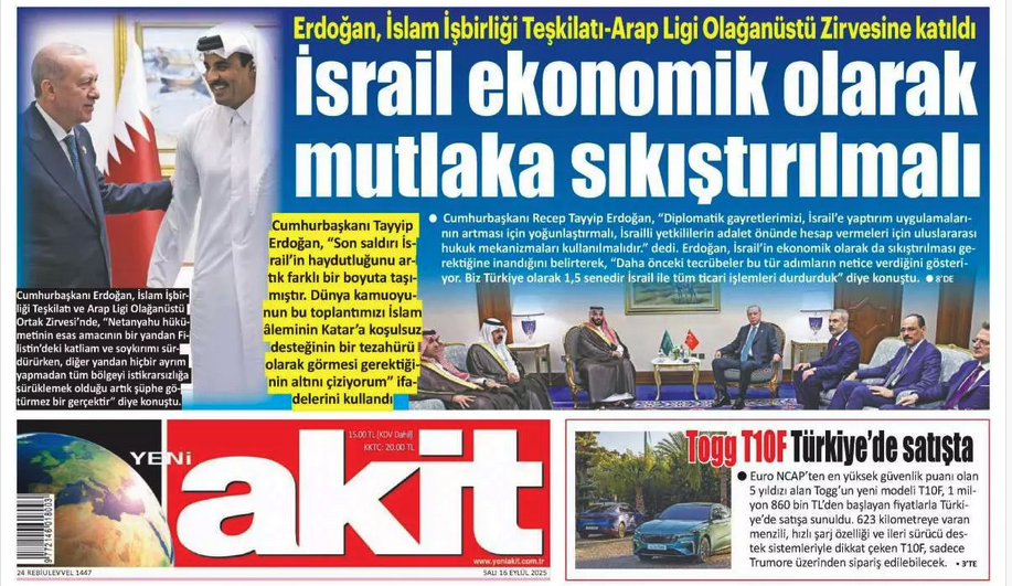 Çünkü Çünkü İsrail’in saldırıları Katar’a kadar uzanmıştı. Birkaç gün önce Telaviv’den fırlatılan füzeler Doha’da Hamas toplantısını vurmuştu. Zirve bu saldırıya bir cevaptı. İslam ülkelerinin liderleri toplandı, hamasi nutukları atıldı ve sonunda bir bildiri yayınladı.