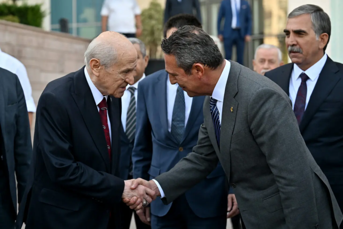 Hafta sonu oynanan Göztepe deplasmanında saha içerisinde saldırıya uğrayan Fenerbahçe Başkanı Ali Koç, bugün iki önemli ziyaret gerçekleştirdi. Önce CHP Genel Merkezi’nde Özgür Özel ile görüştü; ardından MHP Genel Merkezi’ne geçerek Bahçeli’yle 1 saat görüşme gerçekleştirdi.
